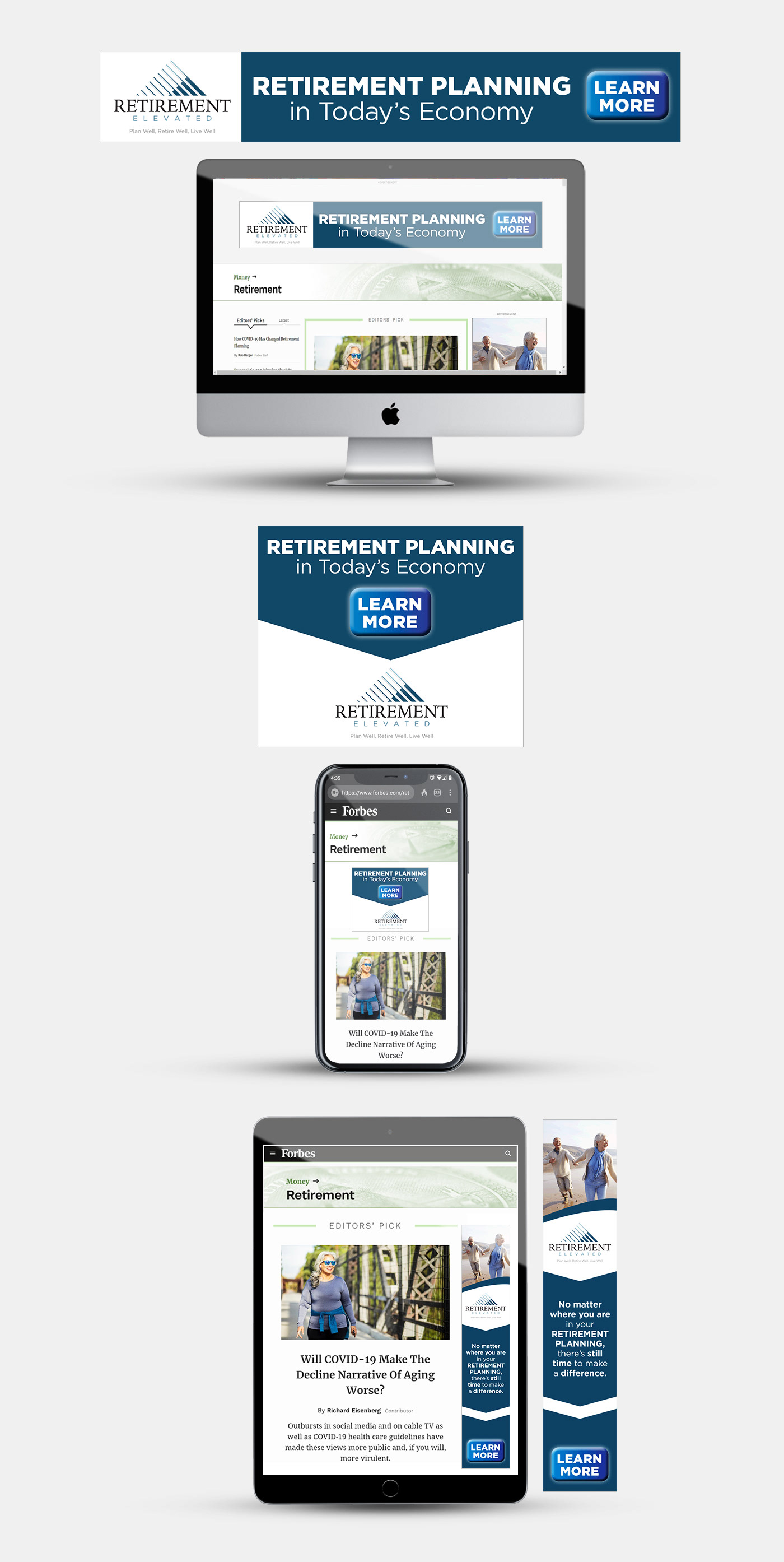 Web banner designs for Retirement Elevated; a provider of retirement planning educational courses.